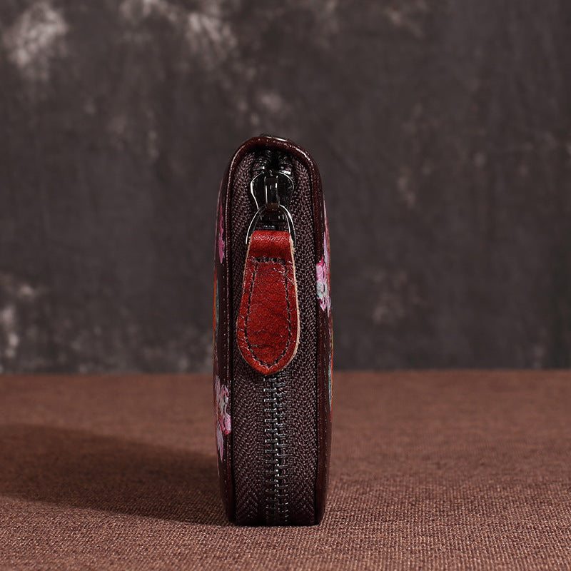 Leather Ladies Wallet Retro Fashion Long Zipper Phone Bag Top Layer Cowhide Clutch